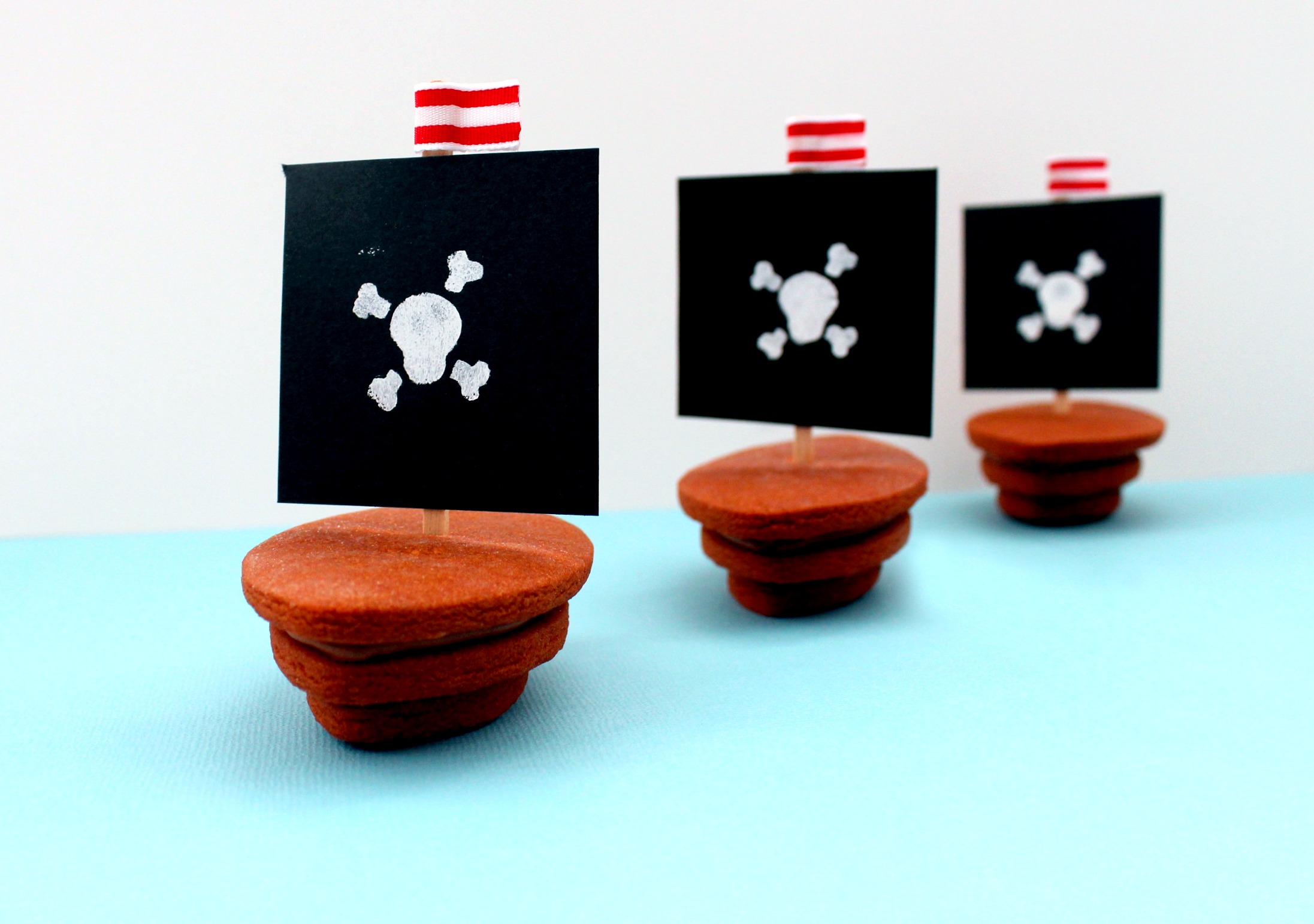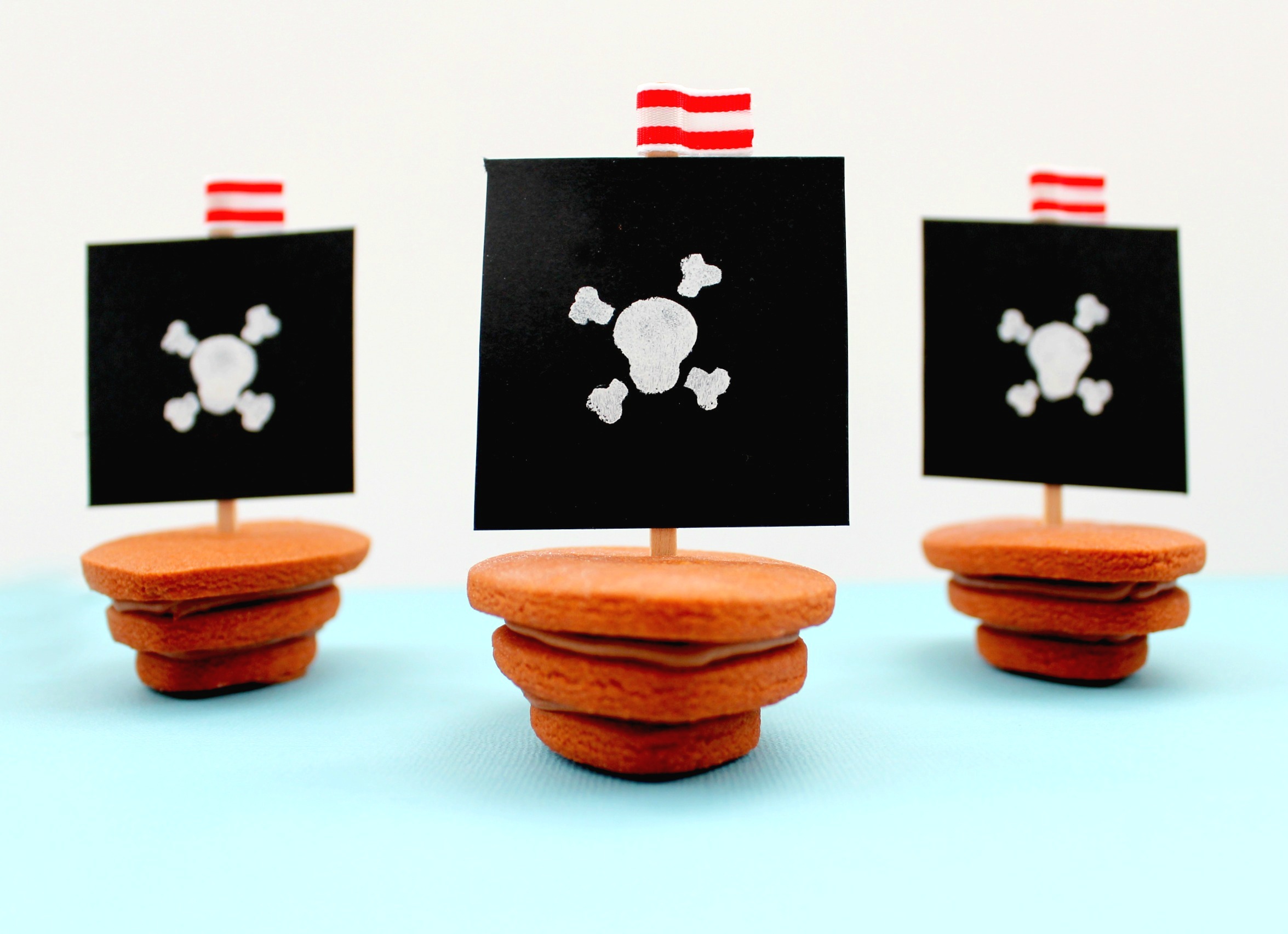 This is a “no-decorate” cookie that anyone can make for their next pirate party! I cannot wait to make more…I already have the red and white sails in the works! These will be making a re-appearance VERY soon!
