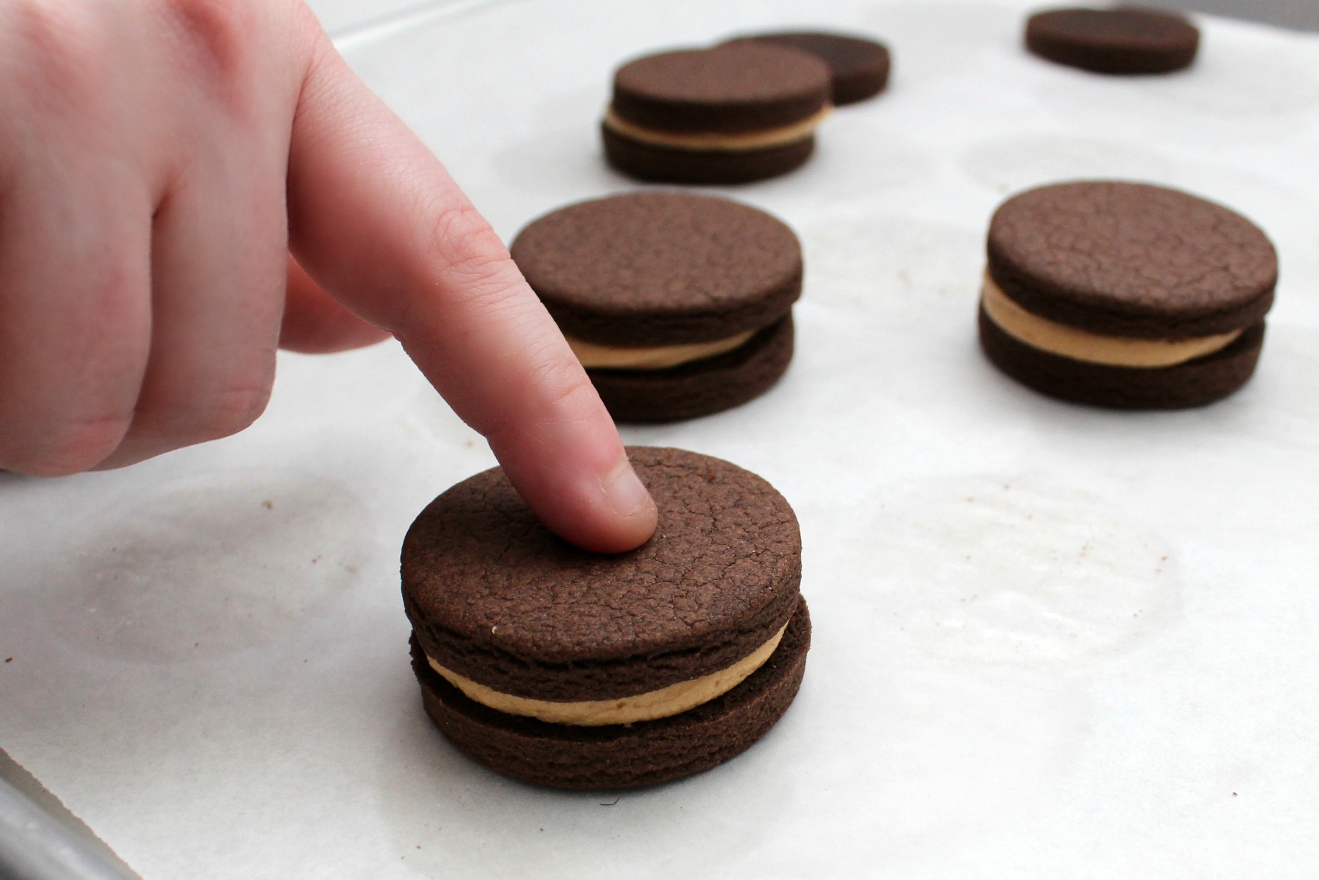 Chocolate Peanut Butter Creme Cookies for Mikey