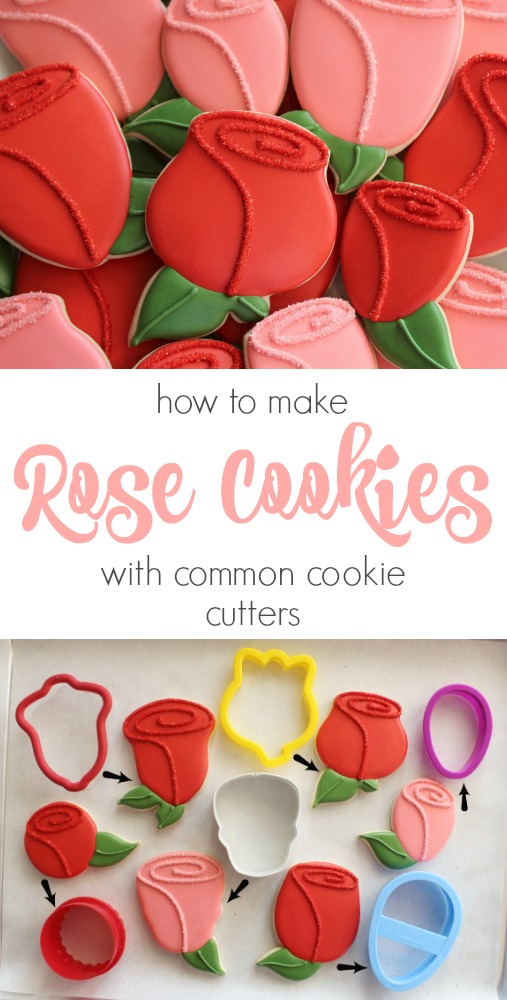 How to make rose cookies with cutters you probably already own! Pictured bell, tulip, egg, skull, and circle.Believe it or not, I have never been a rose kind of girl.  It’s always bothered me that something so expensive dies in just a few days.  That doesn’t mean I’m not a romantic, I just prefer gifts that last a little longer…or at least taste good.